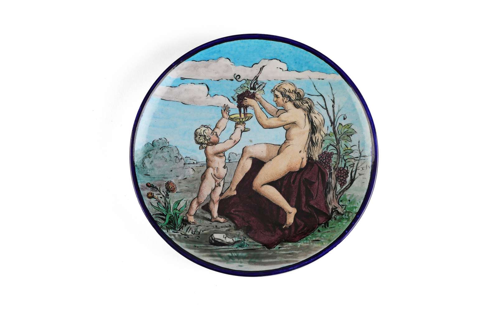 En faïence émaillée, à décor polychrome d'une scène dans le goût de la Renaissance à la Bacchante et au jeune bacchant.