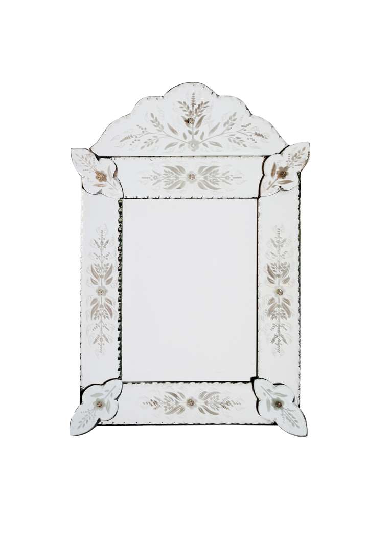 De forme rectangulaire, surmonté d'un fronton, en verre gravé à décor de fleurs.