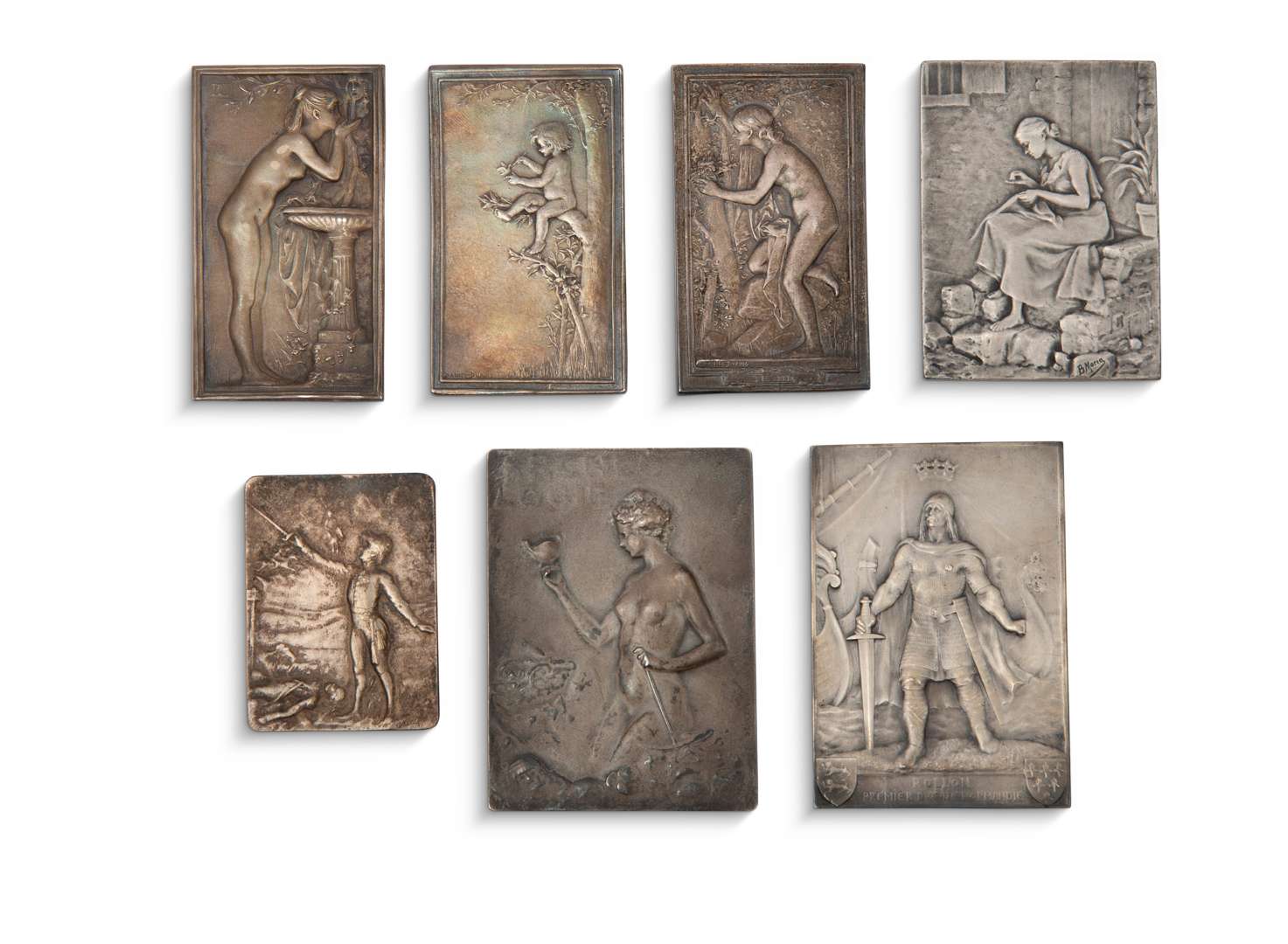 Collection de sept plaquettes commémoratives bifaces.