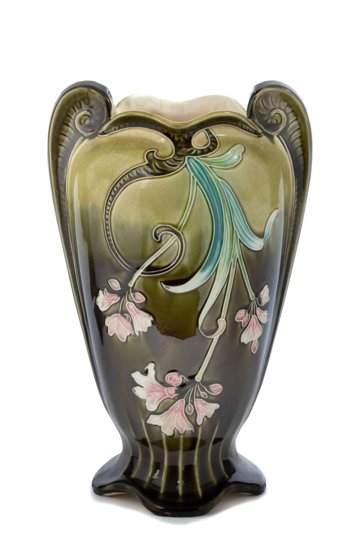 En faïence émaillée, à décor floral émaillé polychrome sur fond vert.
