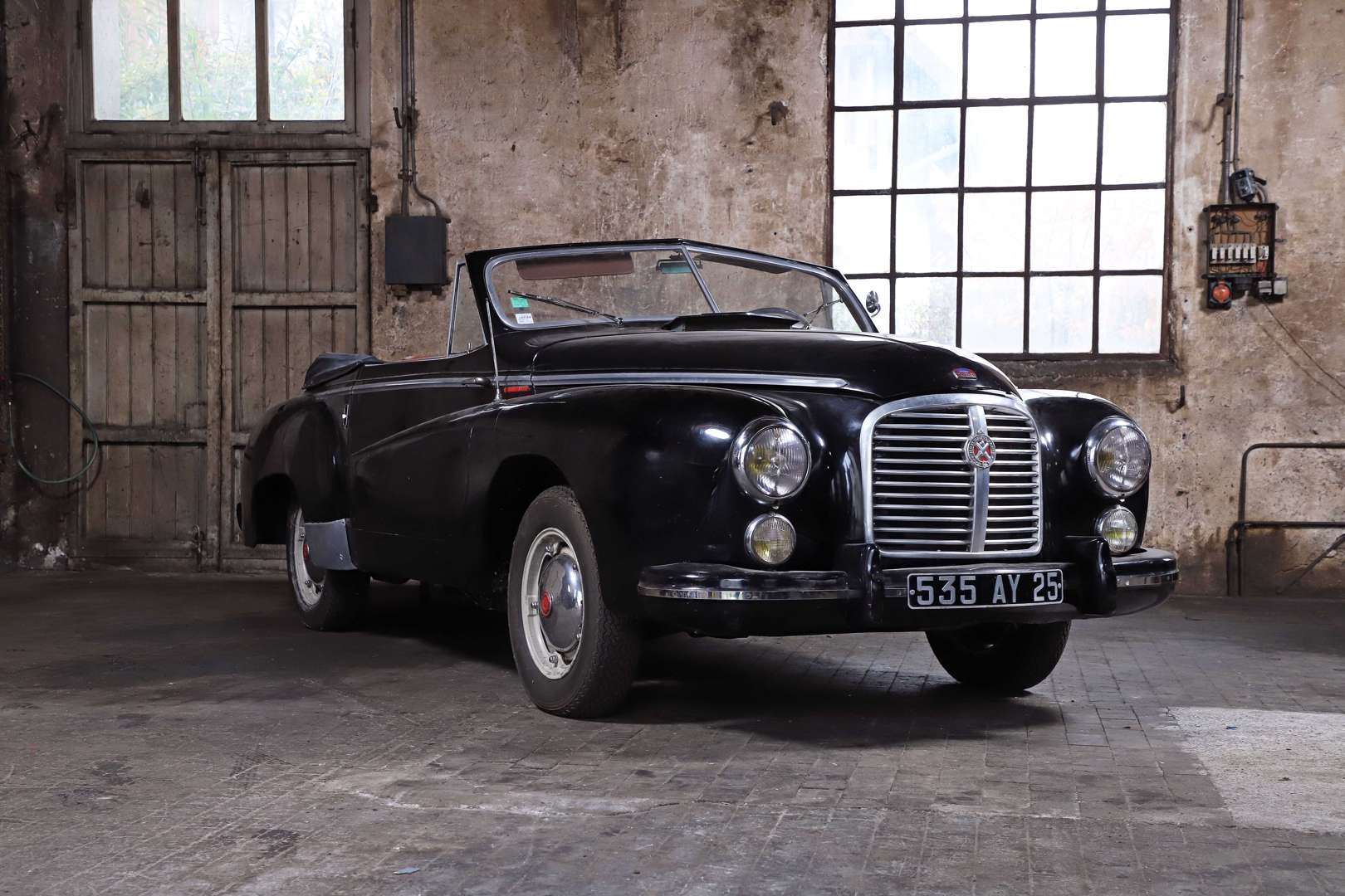 - La voiture que nous vous présentons est l’un de ces 7 cabriolets signé Chapron, numéro de caisse 7058. Entrée dans la collection de Monsieur F. en 1959, elle n’a que peu roulé, son compteur indiquant 11 854 km, un kilométrage qui semble d’origine au regard de l’état de la voiture, joliment patinée, mais peu usée, et certainement en peinture d’origine…