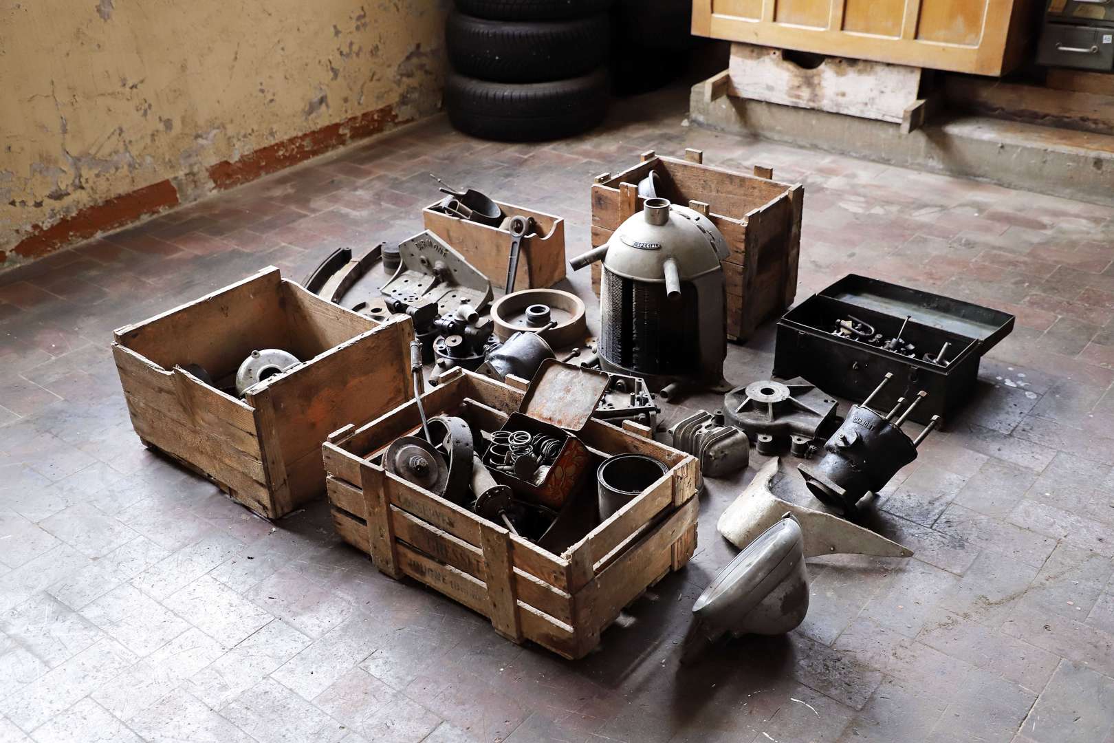 Lot vendu sur désignation, à récupérer après la vente sur rendez-vous dans le Doubs (25) Lot sold by designation, to be collected after the sale by appointment in Doubs (25) Lot de pièces d’origine incluant un radiateur, des carters moteur (abimés), des cylindres et culasses, des éléments de vilebrequin et volant moteur, une bielle, etc. Photos complémentaires sur demande.