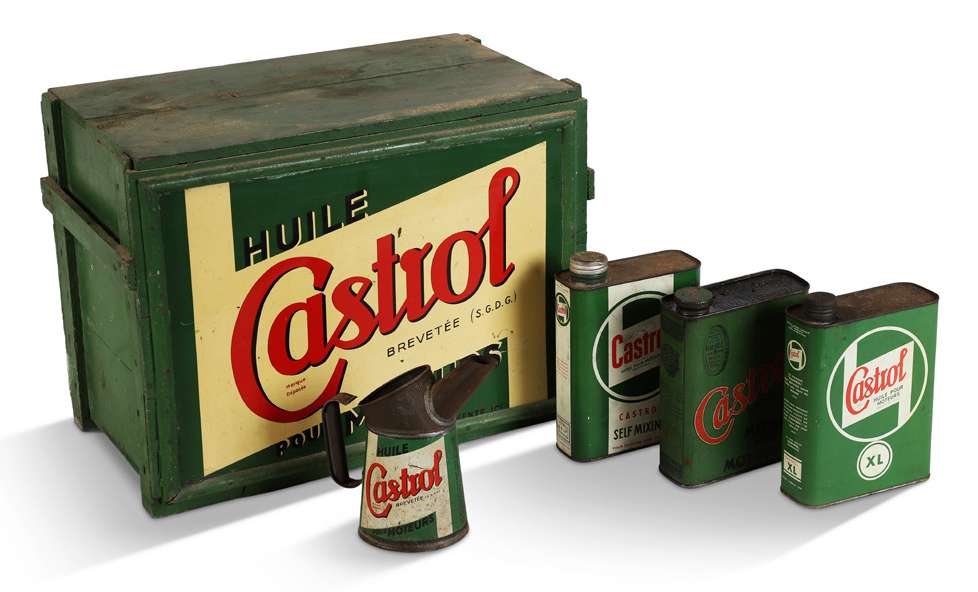 Lot comprenant une caisse en bois peint avec 2 tôles lithographiées, 3 bidons et 1 broc 41 X 56 X 31 cm env. Ref 458