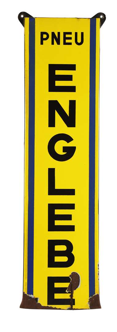 Plaque en tôle émaillée, emboutie Coupée sur la partie basse 84 X 22 cm env. Ref 58