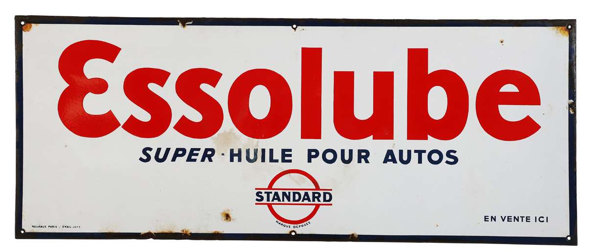 Super - huile pour autos Plaque en tôle émaillée, emboutie Neuhaus Paris - Email Japy 60 X 150 cm env.