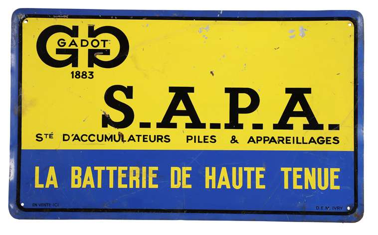 Accumulateurs, batterie Plaque en tôle lithographiée D.E.M. Ivry 30 X 50 cm env.