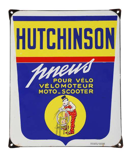Pneus vélo, vélomoteur, moto, scooter Plaque en tôle émaillée, emboutie Emaillerie Alsacienne Strasbourg 38 X 31 cm env. Ref 142
