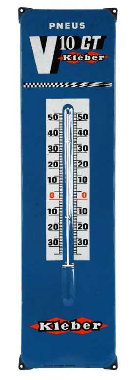 Pneus V10 GT Thermomètre en tôle émaillée Emaillerie Alsacienne Srtasbourg Capillaire absent 67 X 18 cm env. Ref 192