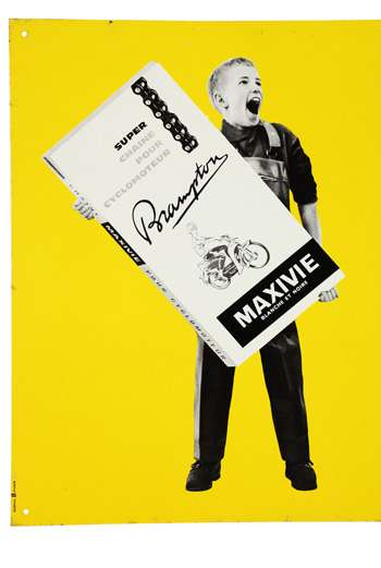 Lot de 2 tôles lithographiées Maxivie - Chaînes cyclomoteurs Signal Paris - 30 X 24 cm env. Bière Vézelise - Motobécane 350 A.G.C. 406 2076 - 32 X 24 cm env.