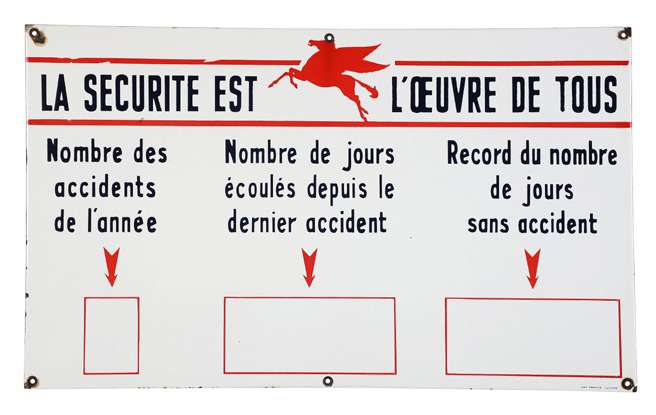 La sécurité est l'œuvre de tous Plaque en tôle émaillée, emboutie ART - France Luynes 42 X 70 cm env. Ref 150