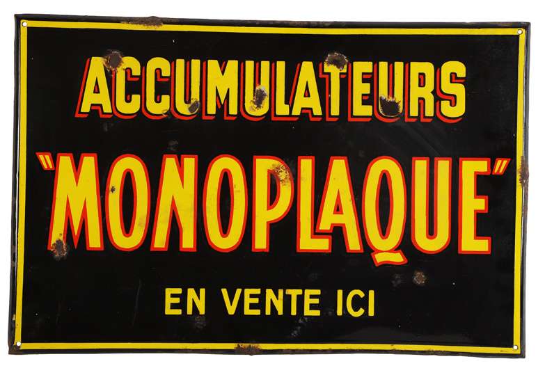 Accumulateurs en vente ici Plaque en tôle émaillée, emboutie 49 X 74 cm env.