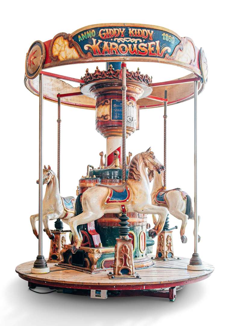 Carrousel Giddy Kiddy 1890 présentant 3 chevaux