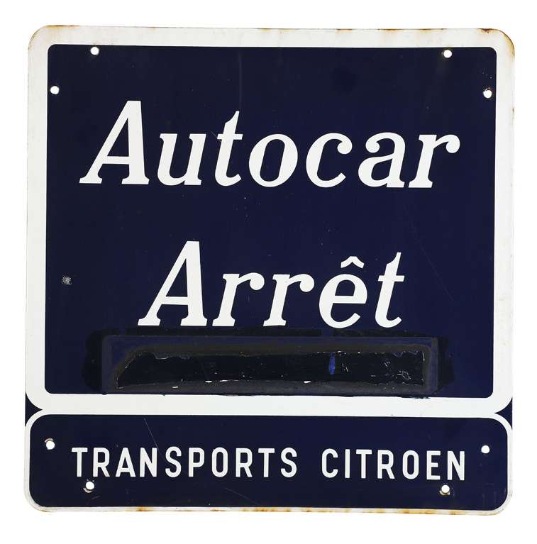 Autocar Arrêt Plaque en tôle émaillée 50 X 50 cm env.