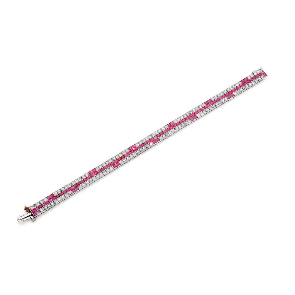 A ruby, diamond, gold and platinum Art Déco bracelet, circa 1920