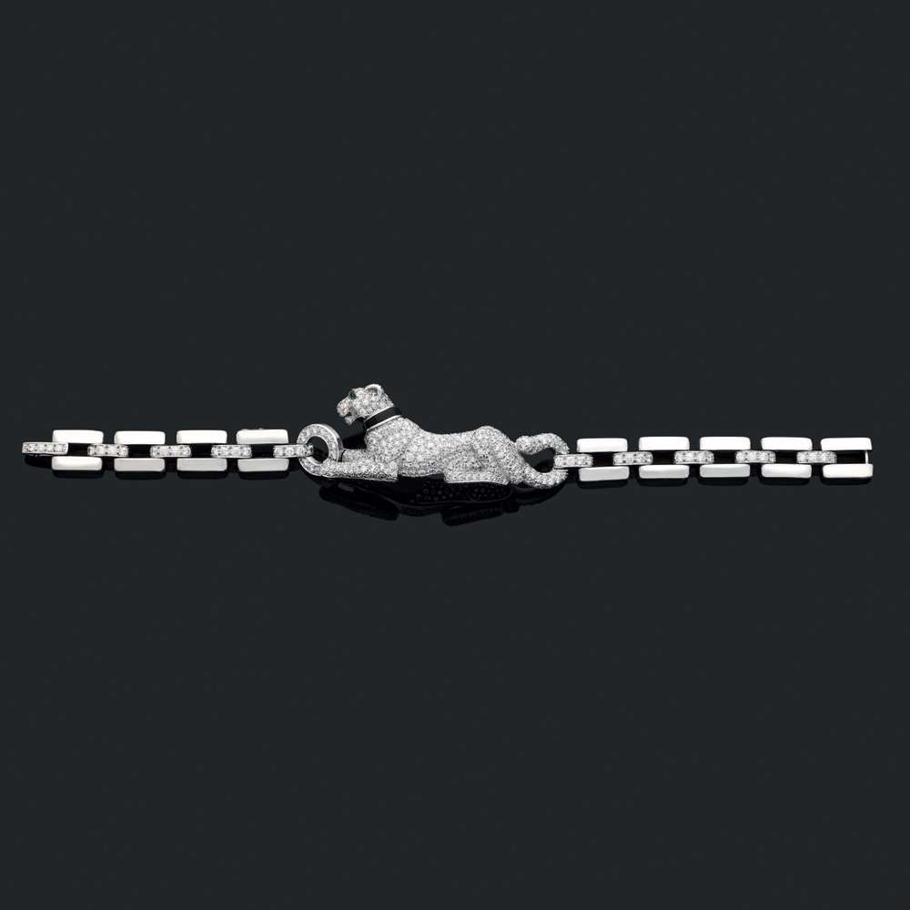 A diamond, onyx, emerald and gold bracelet, signed Cartier