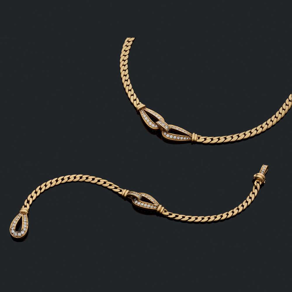 Diamond and gold bracelet and neckalce, signed Cartier and stamped Georges Lenfant