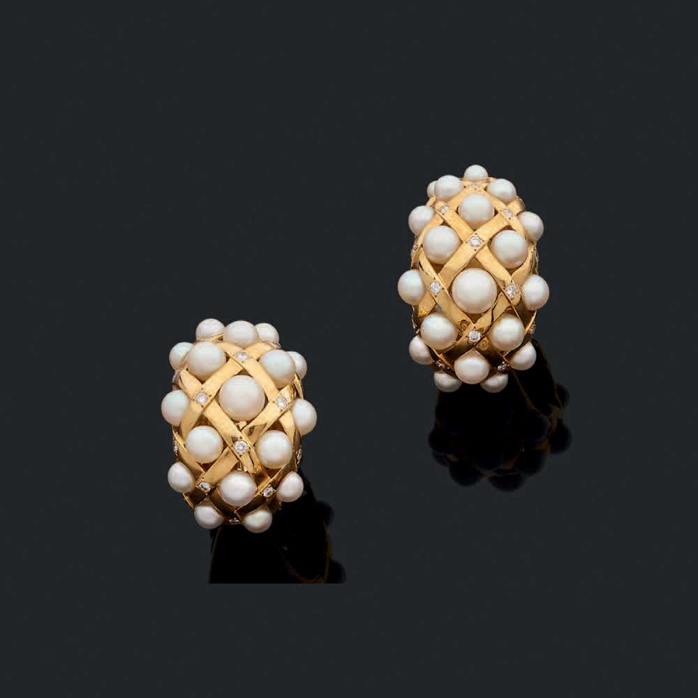 Pearl, diamond and gold earrings, signed Chanel