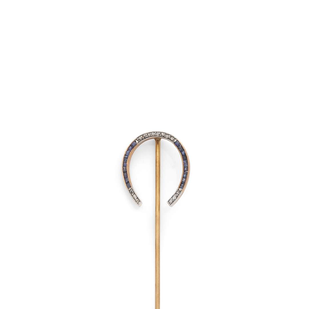 A sapphire, diamond and gold pin