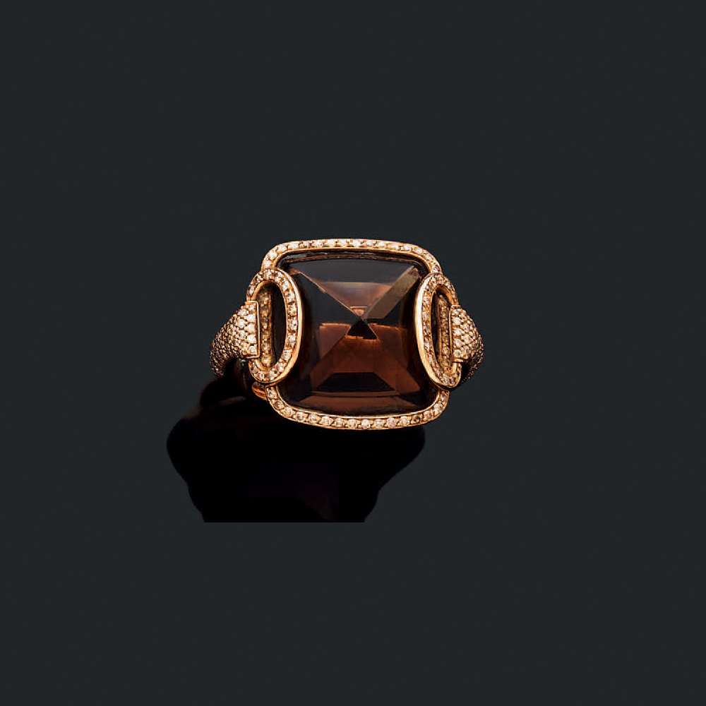 Quartz fumé en pain de sucre et diamants ronds taille brillant