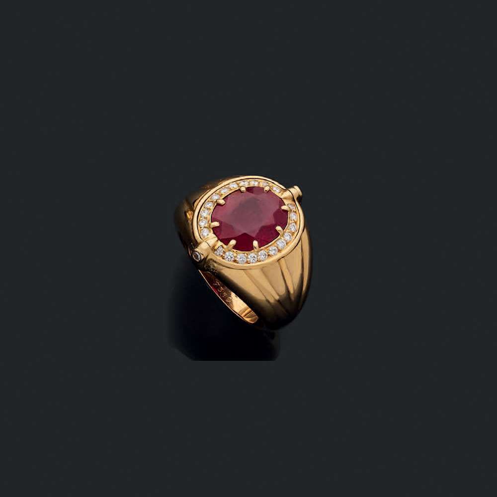 A ruby, diamond and gold ring, signed Mellerio, report