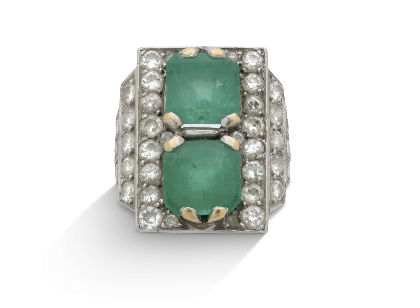 Émeraudes carrés à pans coupés et diamants ronds taille brillant