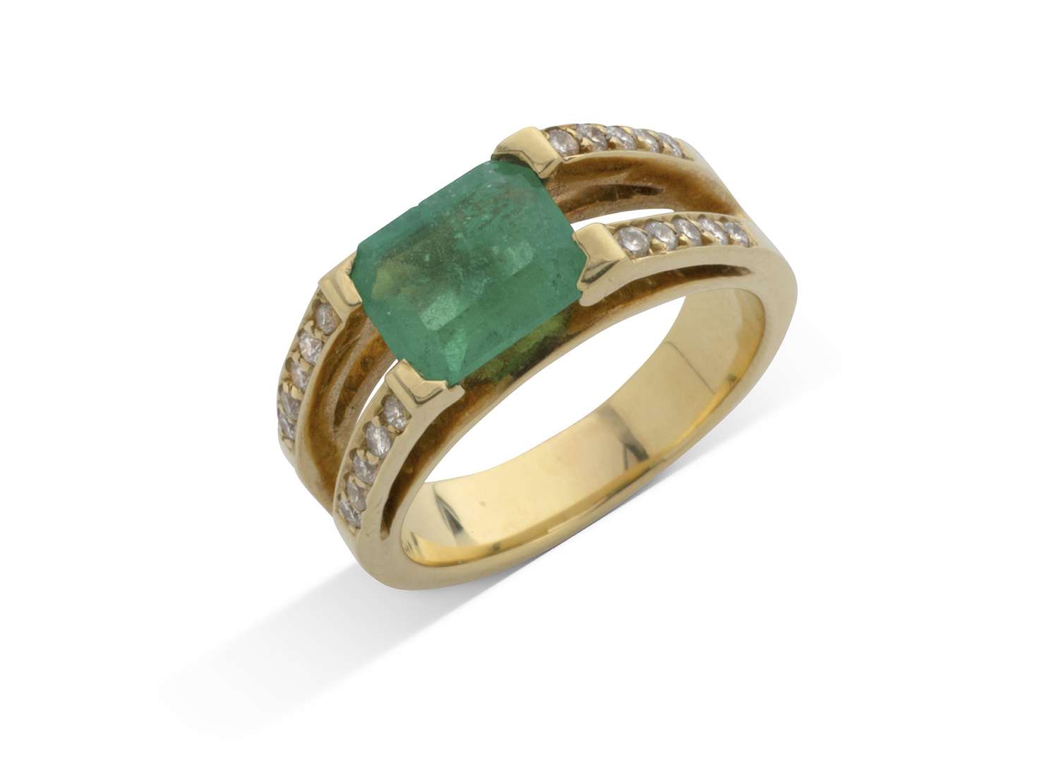 Emeraude rectangulaire à pans coupés et diamants ronds taille brillant