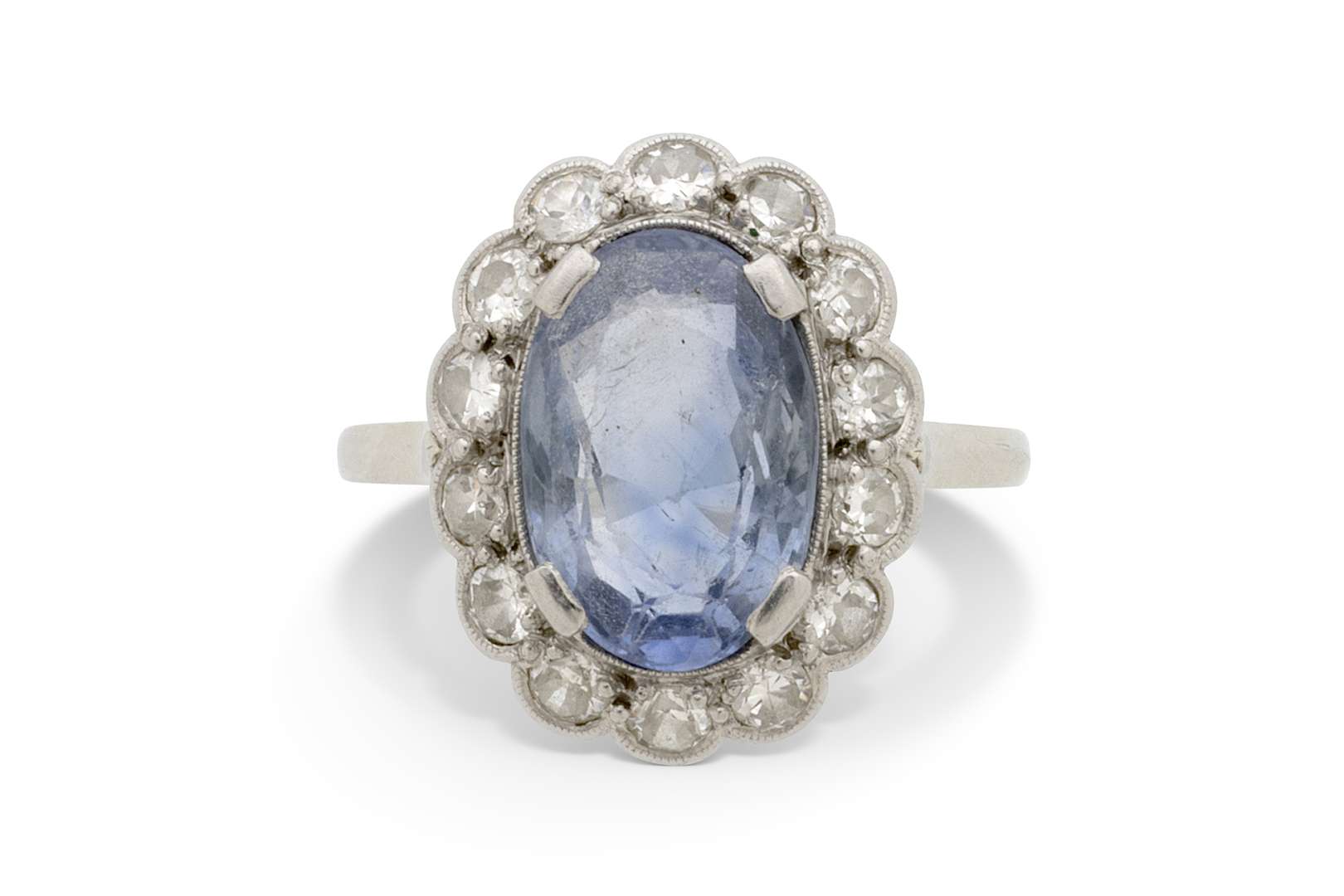 Saphir ovale, diamants taille huit-huit et taille ancienne