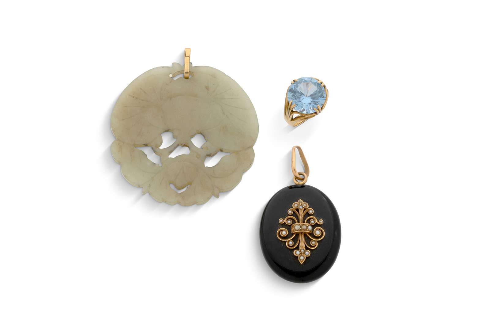 • Pendentif, jade et bélière or 18k (750). Pb. : 26.1 g