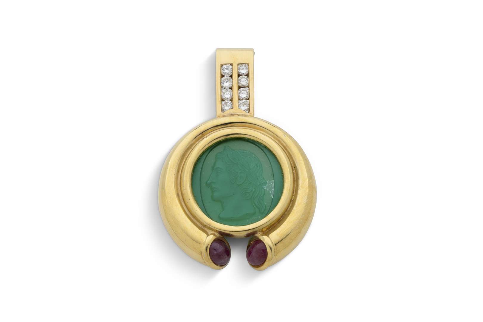 Rubis cabochons, diamants taille brillant et pâte de verre