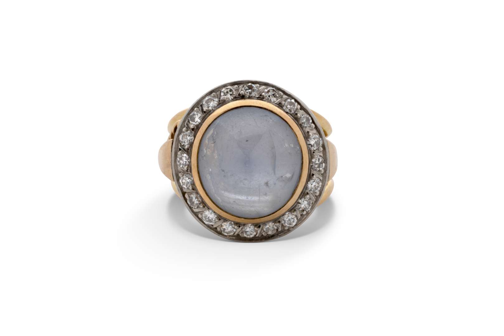 Cabochon de saphir étoilé, diamants ronds taille brillant et taille huit-huit