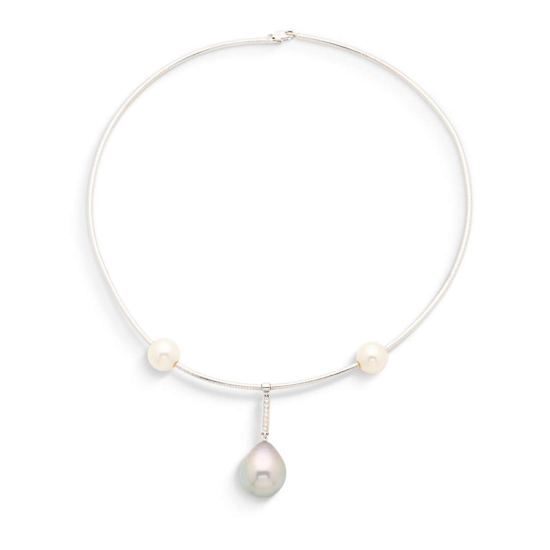 Perles de culture et diamants taille brillant