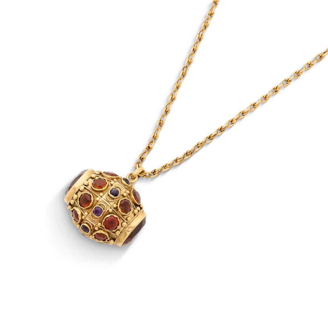 Dim. du pendentif : 2.8 x 3 cm env. - L. de la chaine : 70 cm env.