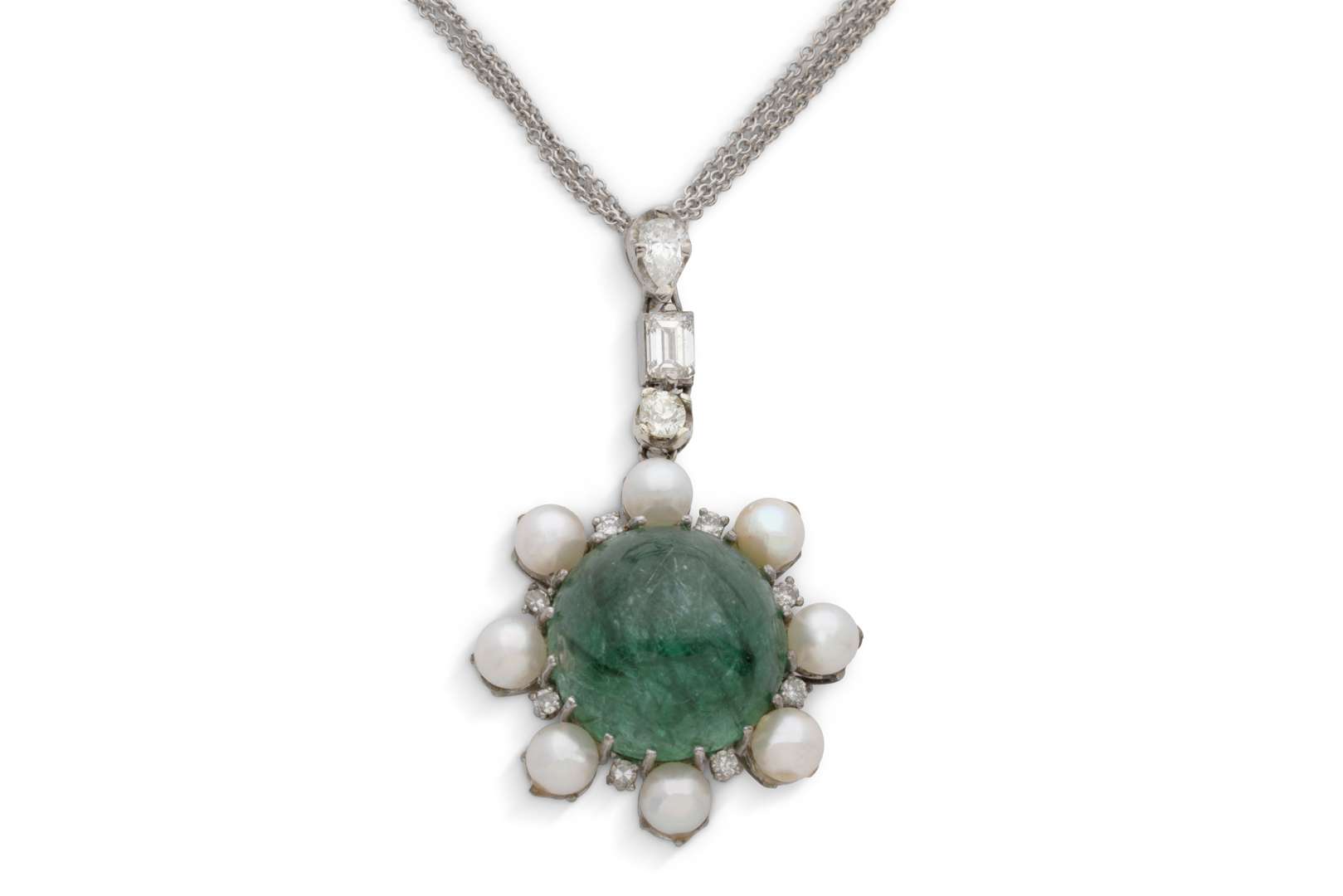 Emeraude cabochon et perles de culture