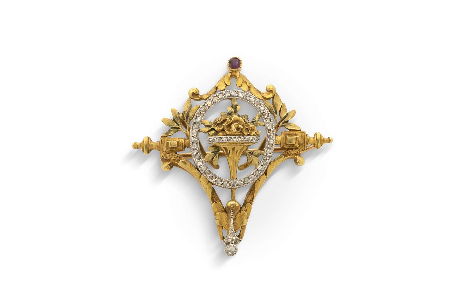 Diamants taille rose et rubis rond