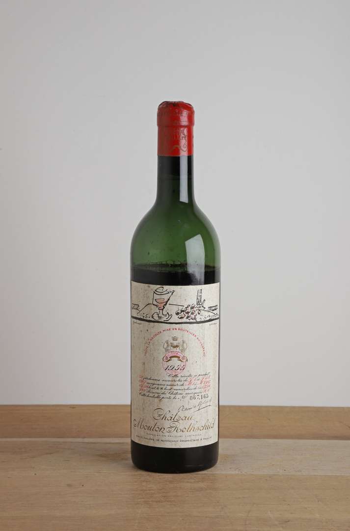 1 B CHÂTEAU MOUTON ROTHSCHILD (Vidange; e.t.h. avec tampon Nicolas; capsule bosselée) - 1955 - GCC1 Pauillac