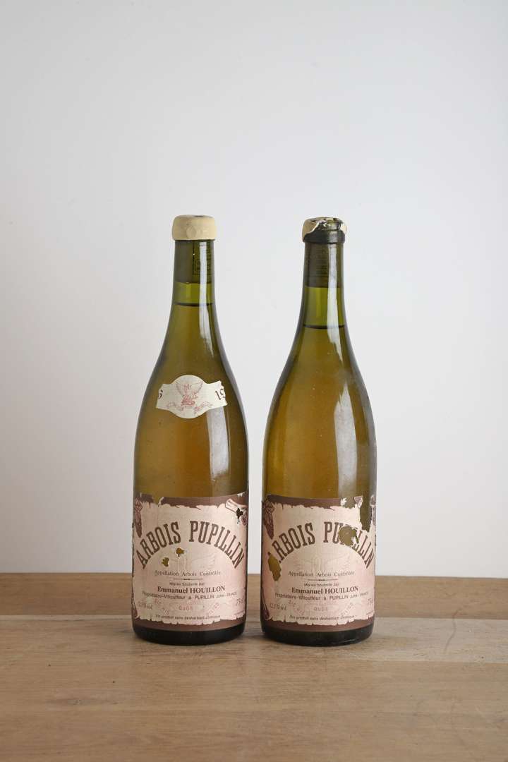 2 B ARBOIS PUPILLIN Blanc (e.t.a; 1 clm.a. très partiellement lisible; 1 s.c.m. supposée; 1 capsule avec cire abimée) - 1996 - Domaine Overnoy