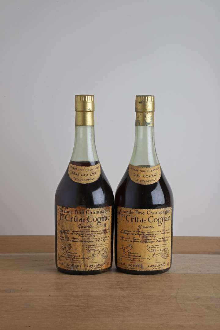 2 B COGNAC GRANDE FINE CHAMPAGNE 73 cl 40% (1 à 5,5 et 1 à 6 cm; e.t.h; 1 c.c.) - NM - Gourry