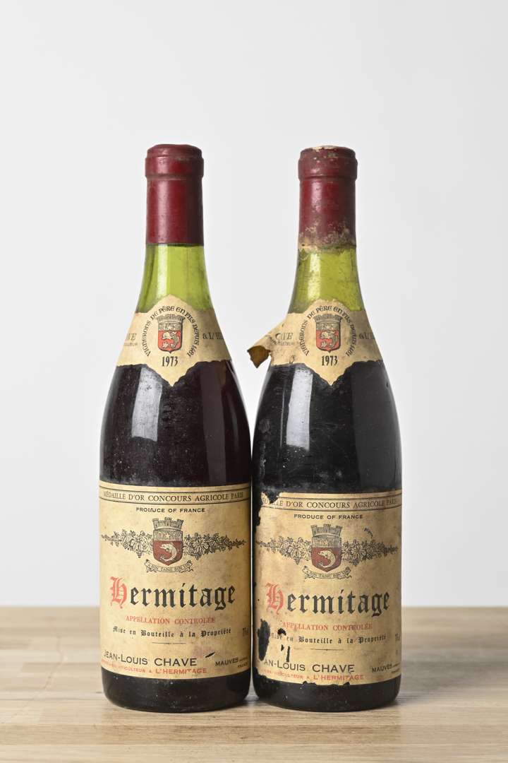 2 B HERMITAGE Rouge (1 à 4 et 1 à 4,3 cm; e.t.h. dont 1 e.t.a; 1 clm.s; 1 clm.a; 1 c.c.) - 1973 - Domaine Jean-Louis Chave