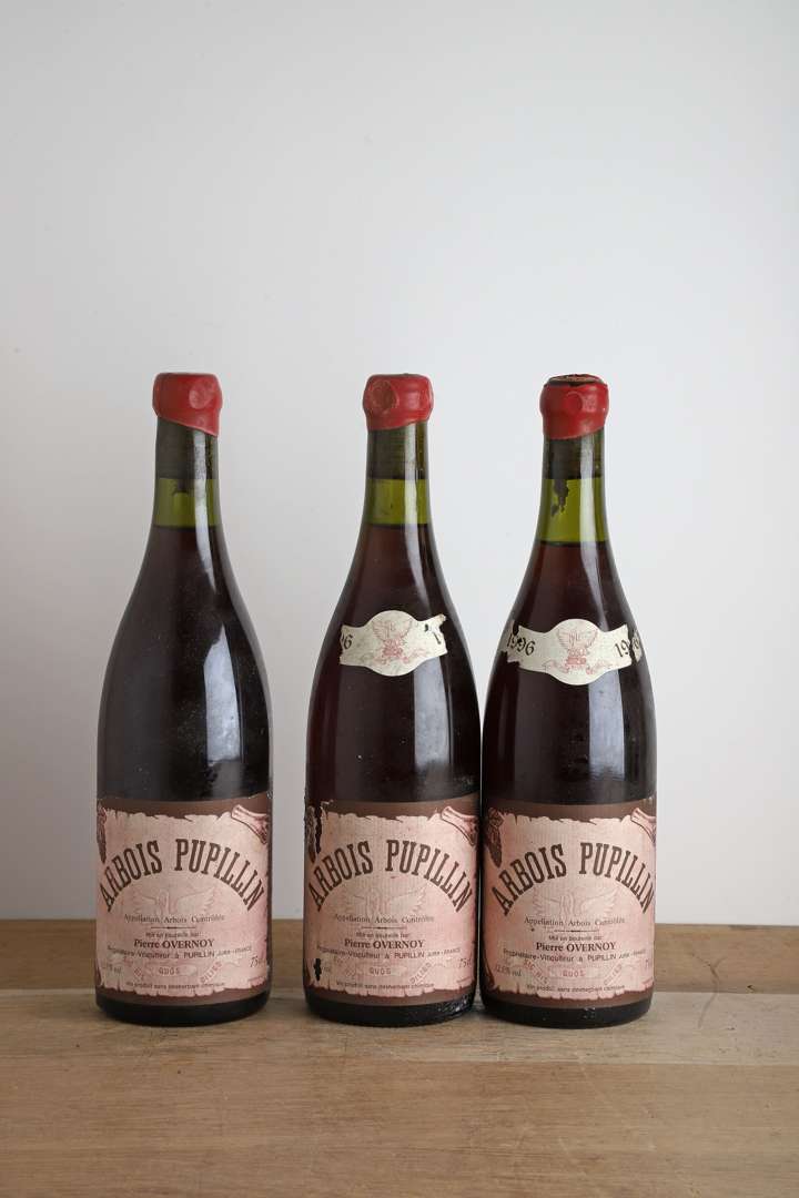 3 B ARBOIS PUPILLIN Rouge (1 e.a; 1 e.t.a; 2 clm.a; 1 s.c.m. supposée; 1 capsule avec cire absente au sommet) - 1996 - Domaine Overnoy