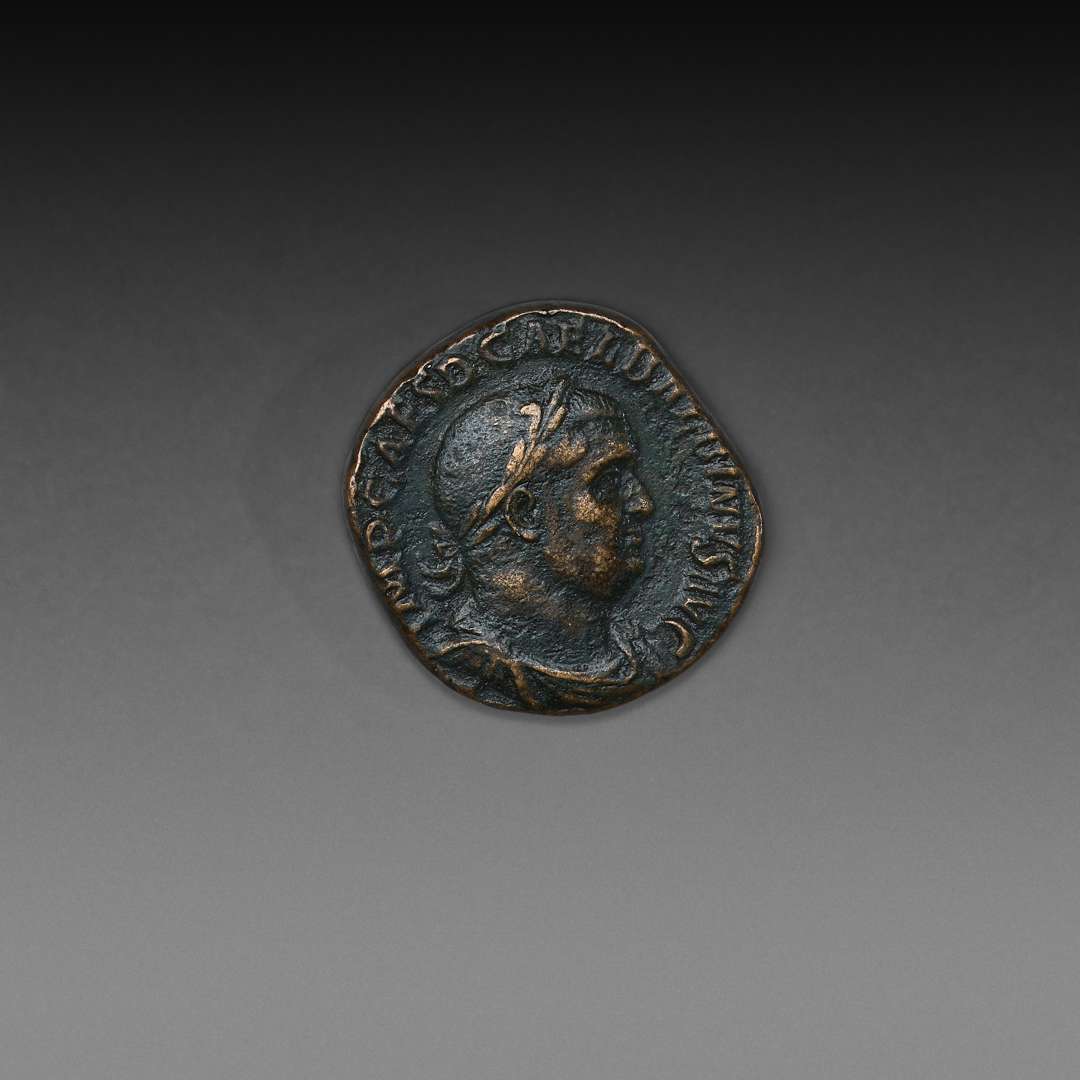Ce rare sesterce représente un empereur qui n'a régné que 4 mois. Initialement élu par le sénat pour déchoir l'impopulaire Maximin le Thrace, il est défait par la garde prétorienne le 29 Juillet 238. lui succède Gordien III, neveu de Gordien II, lui-même un des instigateurs de la rébellion en Afrique Proconsulaire contre Maximin. Le sarcophage de Balbin est un des seuls sarcophages impériaux parvenus jusqu'à nous.