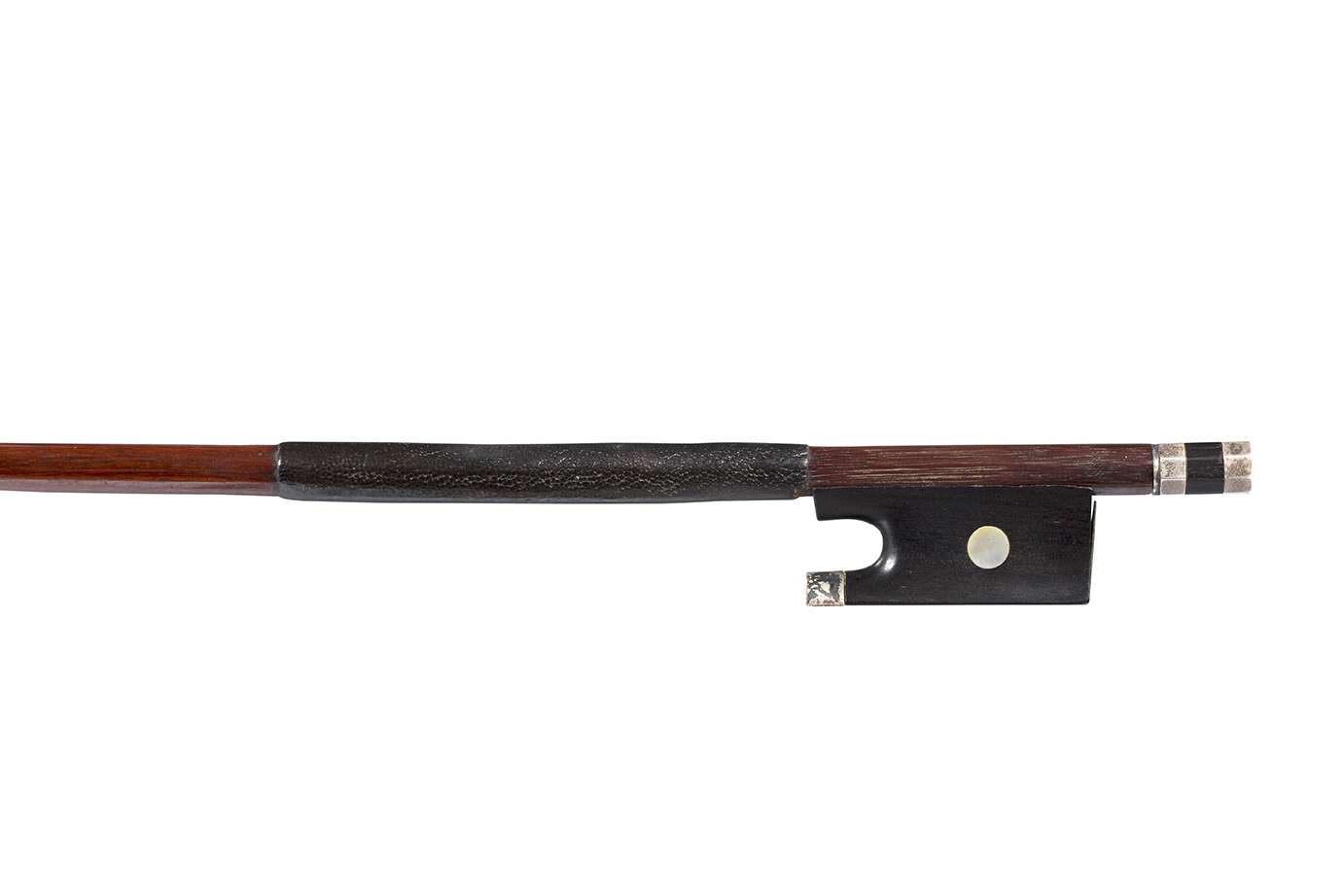 A French Silver-Mounted Violin Bow, the Stick made circa 1840 and signed Peccatte, the Frog by Claude Joseph Fonclause. Restoration Condition