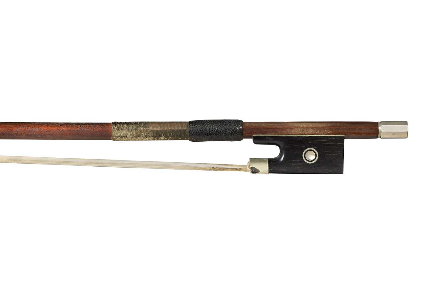 A Rare French Nickel-Mounted Violin Bow by Charles Alfred Bazin, circa 1945. Perfect Condition