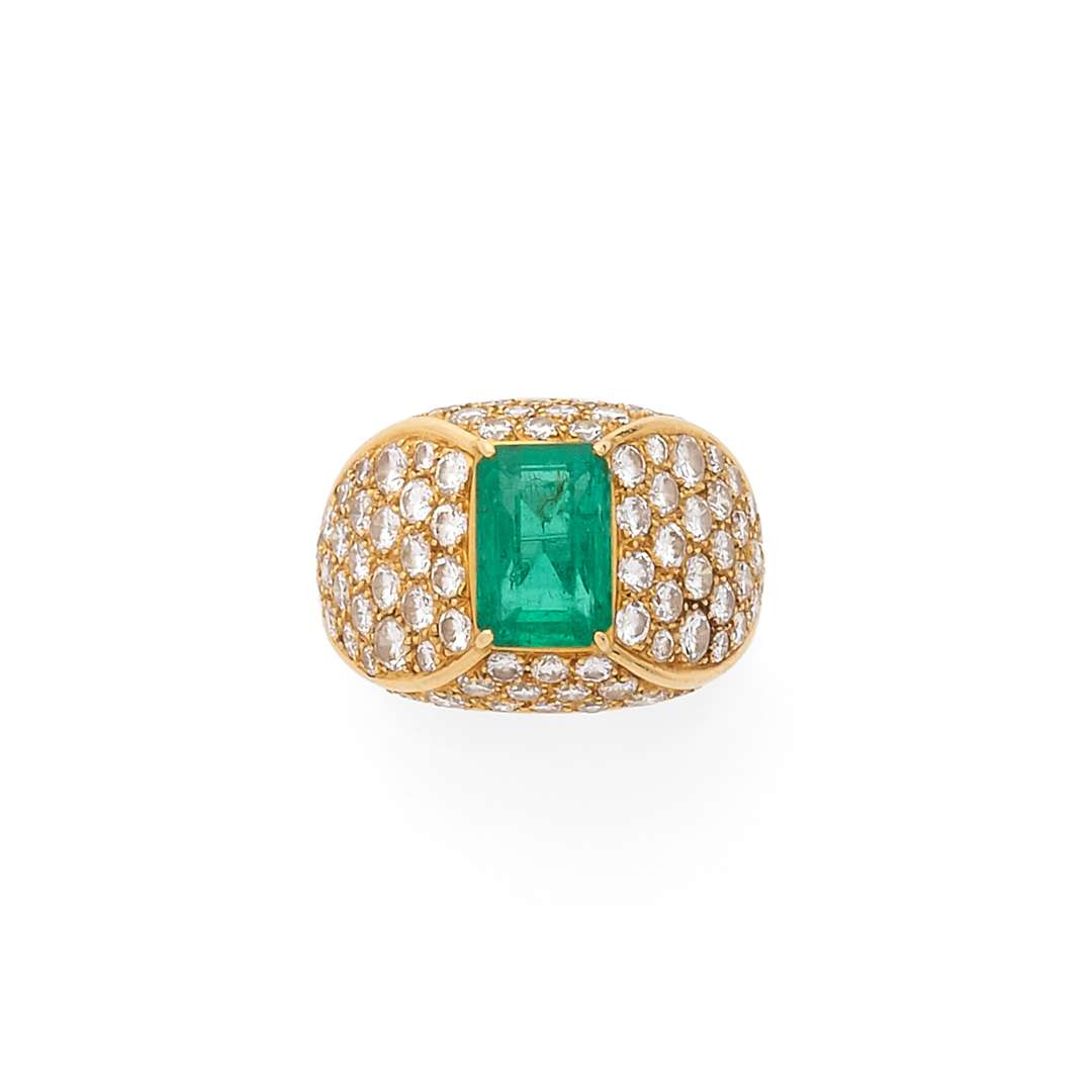 Émeraude rectangulaire, diamants taille brillant