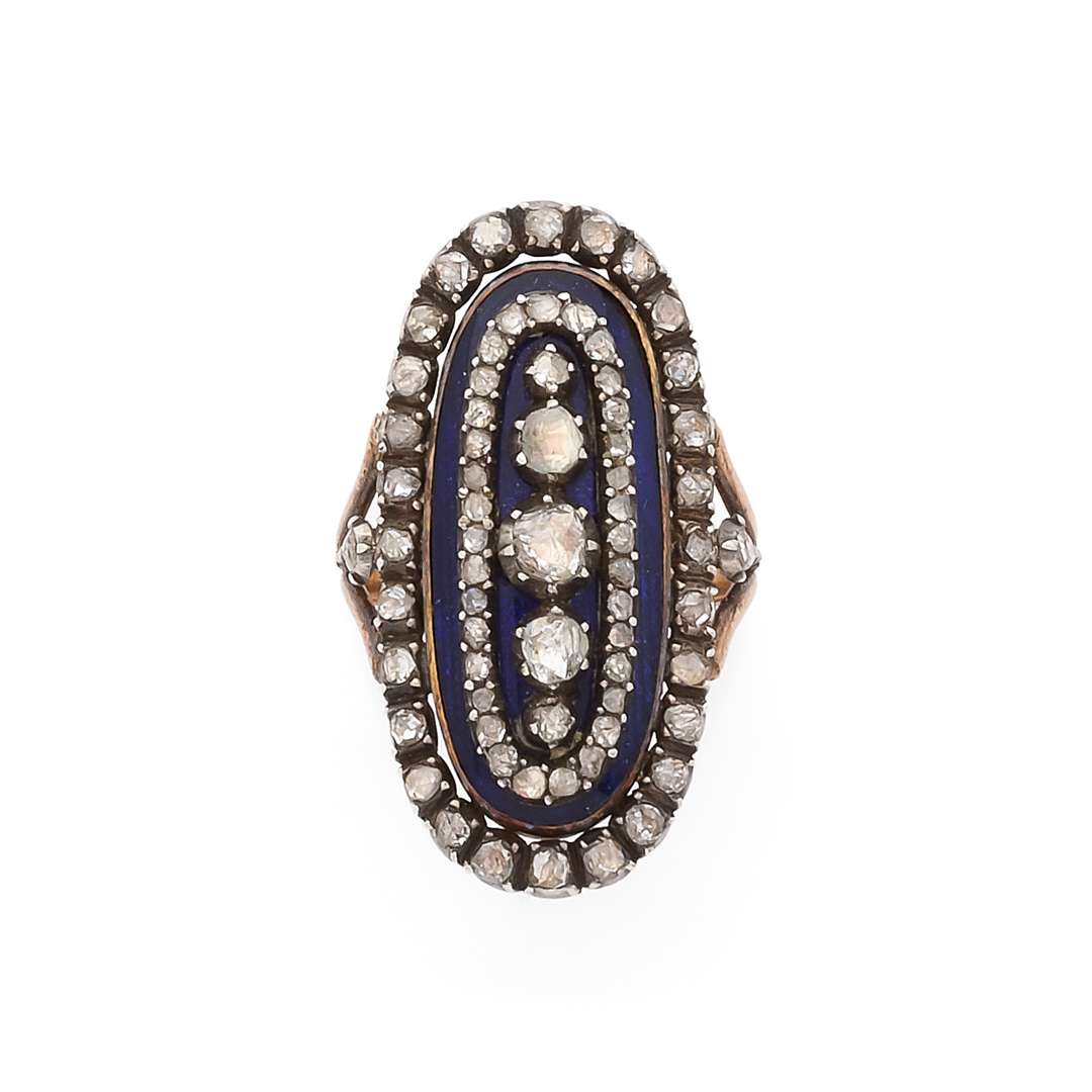 Diamants taille rose, émailOr 18k (750), argent (<800)Époque XIXe - Travail françaisTd. : 55 - Pb. : 8.8 g