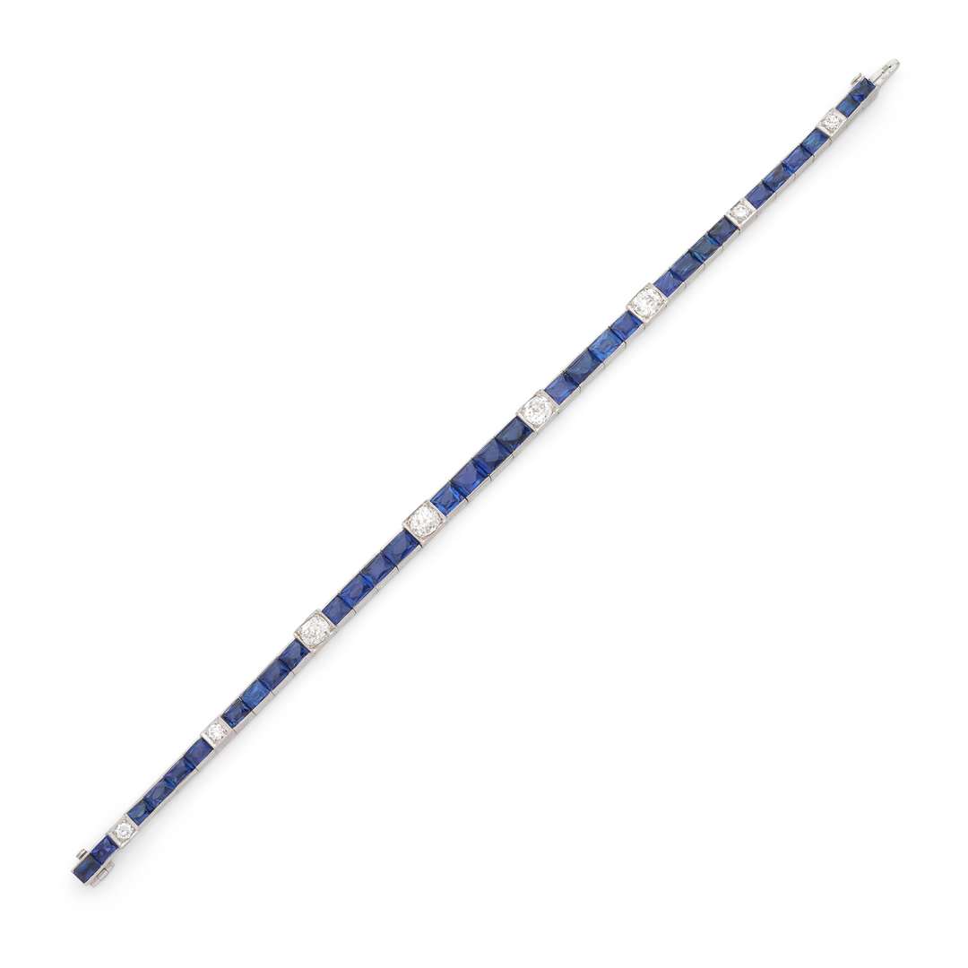Ligne de saphirs calibrés, diamants taille ancienne