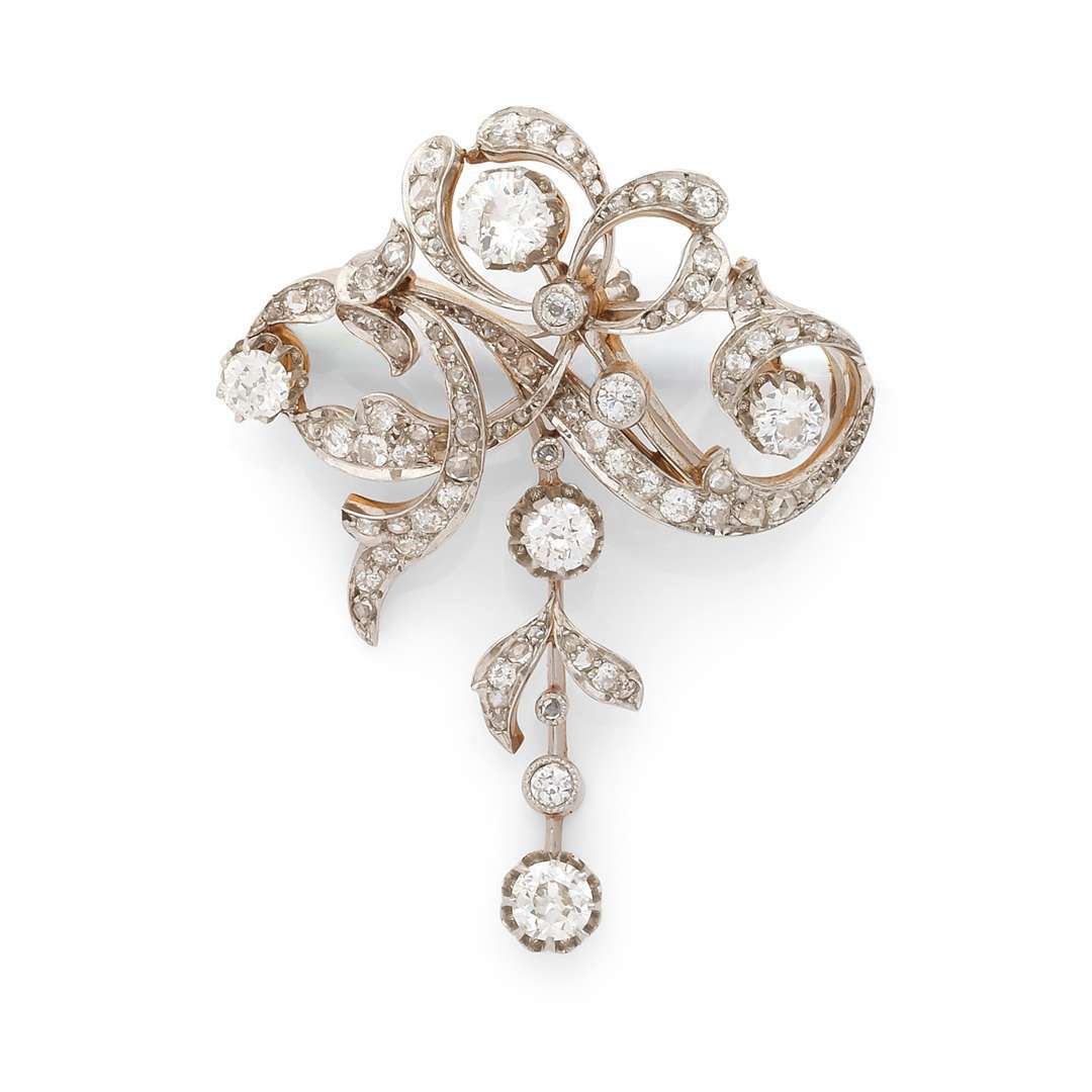 Diamants taille ancienne et diamants taille roseOr 18k (750) et platine (850)Dim. : 6 x 4cm env. - Pb. : 21.7 g