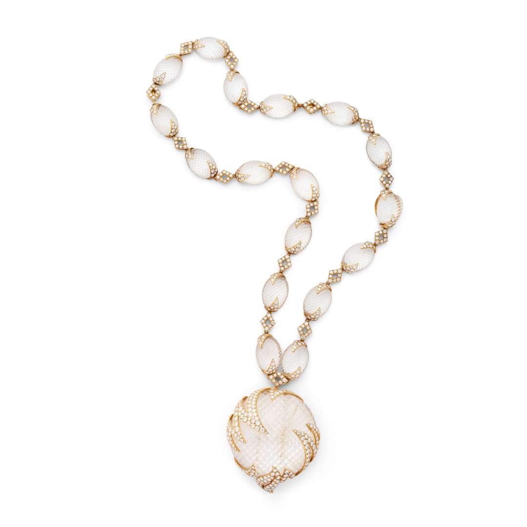 L. bracelet : 17 cm env. - L. collier : 56 cm env. - Diam. pendentif : 6 cm env.