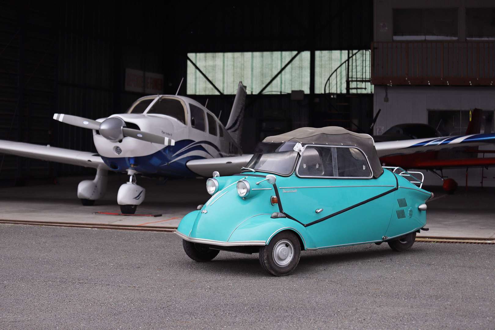 - La Messerschmitt KR 175 pour Kabinenroller ou « scooter à cabine » de 175 cm3 fut présentée au Salon de Genève en 1953 et fit forte impression. Evoquant un fuselage d’avion, ce tricycle pouvait accueillir deux personnes en tandem. L’accès se faisait par une verrière de cockpit basculant sur le côté à l’image du chasseur ME 109.