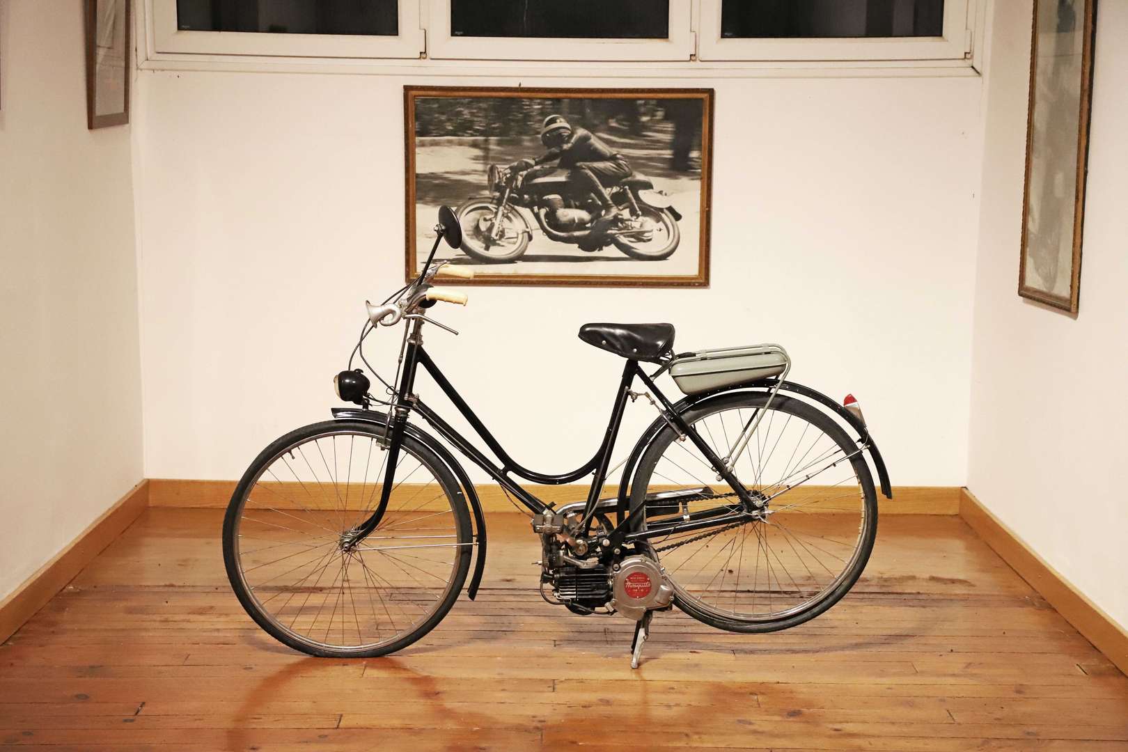 Le Mosquito est né en 1946 dans les bureaux d'études de Garelli, maison milanaise fondée en 1919 par Adalberto Garelli, ingénieur de génie, pionnier du moteur deux-temps de compétition. L'idée est simple et révolutionnaire : concevoir un moteur auxiliaire si compact et si léger qu'il puisse s'adapter à n'importe quelle bicyclette existante, sans modification du cadre ni du train roulant. Le résultat est le Mosquito, littéralement "moustique" est un monocylindre deux-temps de 38 cm³ monté sur un berceau fixé au cadre, entraînant la roue avant par un petit galet de friction. Une solution d'une élégance mécanique remarquable, produite à des millions d'exemplaires et exportée dans le monde entier.