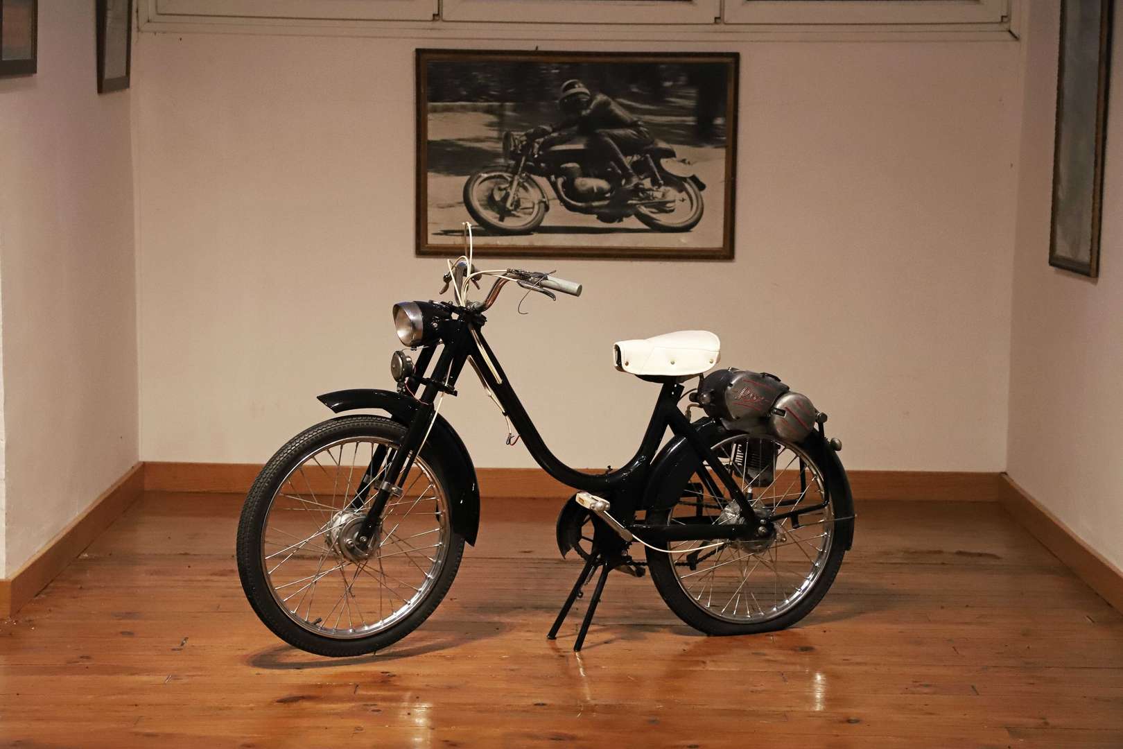 L'exemplaire présenté, daté d'environ 1955, est un moteur 65 cm³ monté sur une bicyclette.